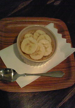 バナナプリン。地味なので、バナナスライスで飾ってみました。(圭)