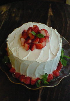 ホールケーキの注文が入っていました。お誕生日のケーキです。中にレモンカードと生クリームが入ったうずまき式デコレーションケーキ。苺で飾って。(圭)