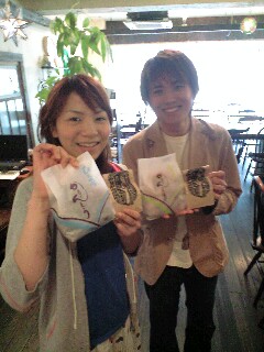 本日日曜日、予告通り、元当店スタッフの清水さんがケンタロウ君といっしょにお祝いにご来店くださいました…まさにお嫁に行った家族が久しぶりに帰って来てくれたかんじ…コーヒー豆とかりんとう、そして日本酒をいただきました。 しかし…清水さん、あいかわらずすてきで、お帰りの際、なんだかまたホロリとしてしまうワタクシでありました(苦笑)。ありがとう。(お)