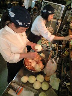 ランチのチキンカレーの仕込みは玉ねぎに始まるなり。今日はアッキー、ヨロシク!…って、玉ねぎにヨワイがゎちゃん、風上に逃げて〜っ!(そこは風下)(お)