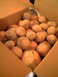 山口で家庭菜園を熱心にやっております、okayan父から突然箱いっぱいのじゃがいもと玉ねぎが送られてきました!サンキュー親父!(お)