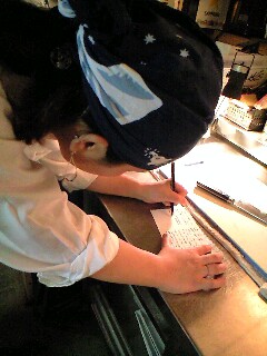 左利き。ちなみにキッチンのくろちゃんも左利き。どうでもいいけど、アッキー、目が近すぎやしないかい?(笑)(お)