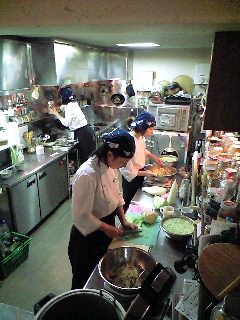 来週のための細々した仕込みに追われるキッチンスタッフ…ほとほと疲れ果ててはいるけれど、黙々と作業を推し進めます。毎度のことながら、いつもアタマが下がります。ありがとう。(お)