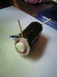 店長ミヤザキが丁寧にさばいた今季初さんま…揚げ物担当くろちゃんがそれを長ねぎに巻いて、風味付けに海苔も巻いて…からりと天ぷら、たづな揚げ!お刺身もいいけど、こちらもかなり魅力的…売り切れ必至?(お)