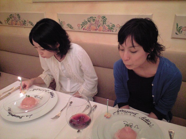 乙女組の二人、近々お誕生日ということで、デザートをちょっと特別にご用意していただきました。さぁ、ふぅ〜っといきましょう、ふぅ〜っと。(お)