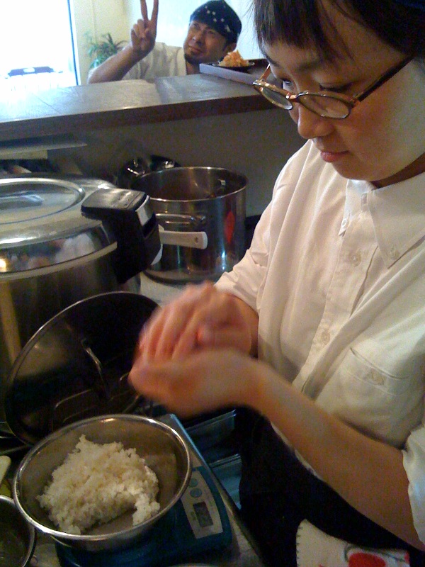 はまこのおにぎり修業と、背後で冷やかすホールのマスター okayan!