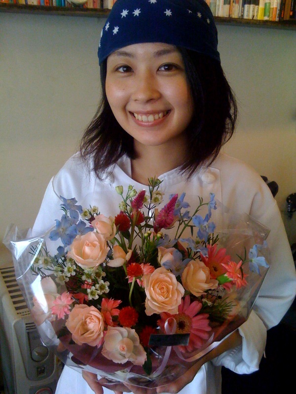 本日ガワちゃん最終日。お客さんからの花束で幕開 け!ガワちゃん人生初めての花キューピッド⁉(麻)
