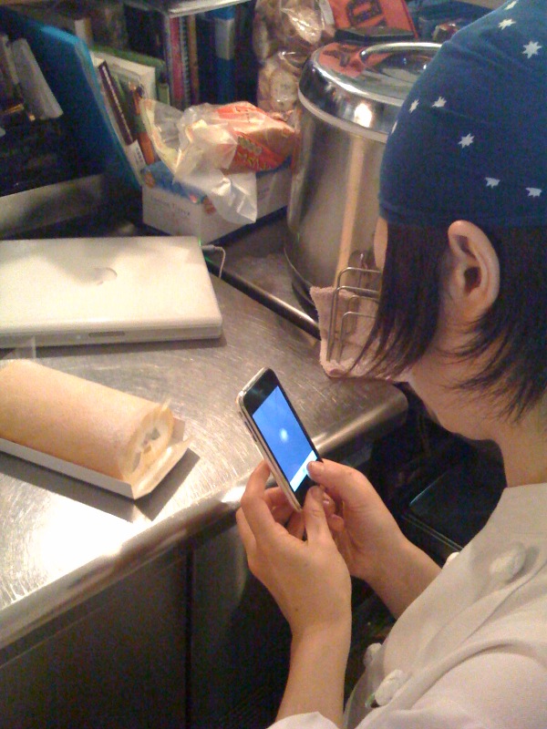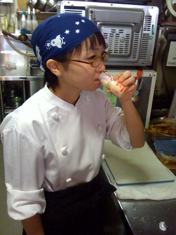 今月からホール係としてすでにちょこちょこ入ってくれております、パダ ワンの安藤さん(通称考え中)、ホールでのテキパキした仕事っぷりもさ ることながら、なによりうちらしい、うちのお店らしいのは、そのたべっ ぷり(笑)。いや、細いからだで、実にたのもしい(笑)。(お)