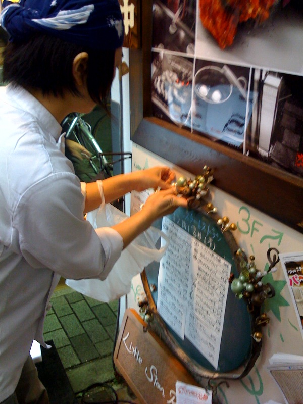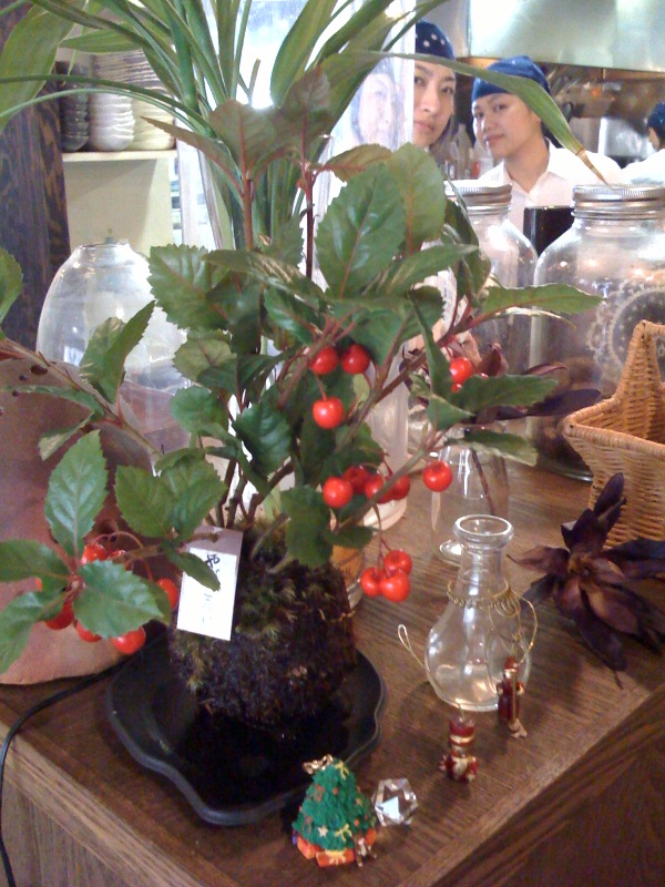 ということで、クリスマスムード一色の今日この頃でございますが、当 店、いつものごとく出遅れておりますね(苦笑)。ま、それでも、下の黒 板のところに小さな、ややシックな飾りをつけてみました…えぇ、リトル スターレストランのほんのりクリスマス(笑)。(お)