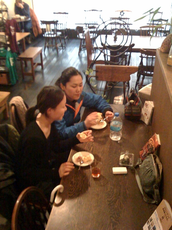 雪でのんびり気味のランチもおわり、賄いをいただくアッキーと沼っち…〆はフ カザワ差し入れのプレーンスコーン!店長ミヤザキ手作りいちごジャムを添え て。うれしいね〜。(お)