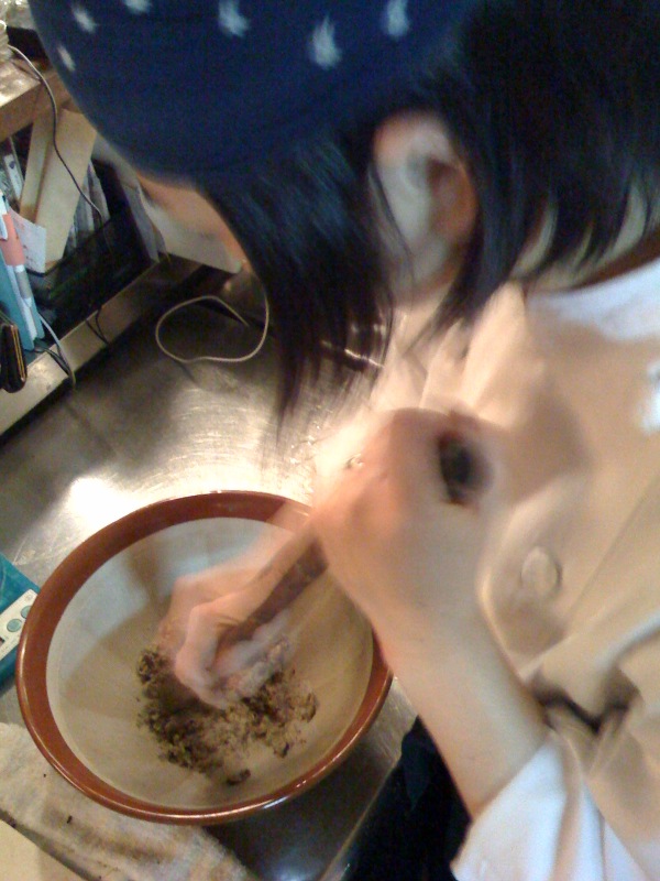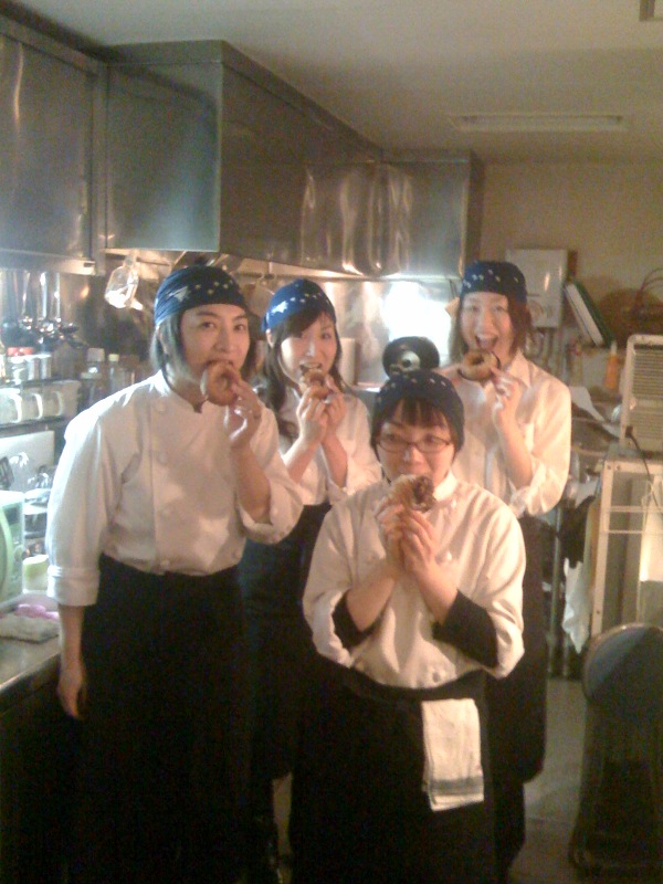 テイクアウトのスコーンやパウンドケーキに添えるおいしい食べ方の用紙 をせっせと切ってくれるカサハラさん…こんな地味な仕事ですけど、誰か がやらなくちゃ、あの紙はないのよね…ありがとう!今日は昼夜通し、頼 んます!(お)