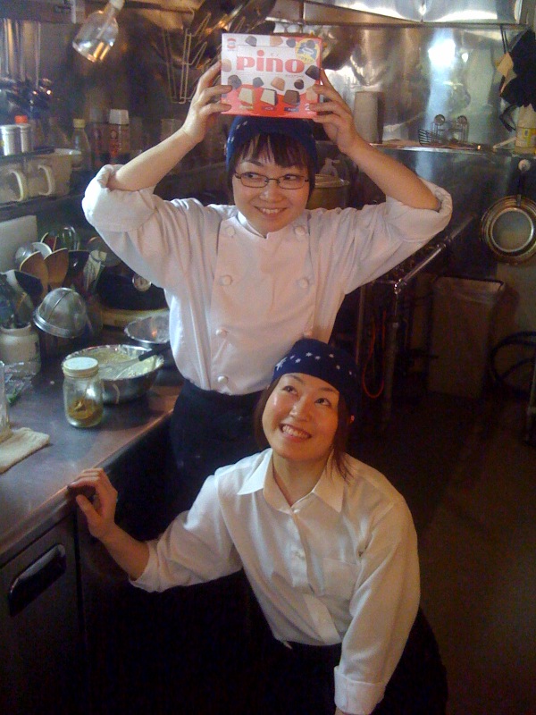 貸切のため閉店中の昼下がり、おなじみのお客さんがピノを差し入れてください ました!おもわずうほほ〜いな、はま子&沼っち…ありがとうございました。 (お)
