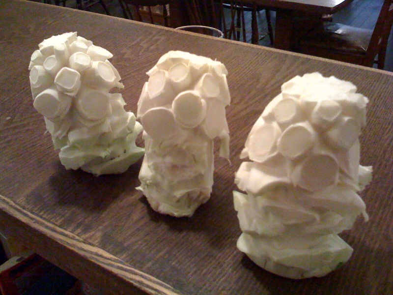 三兄弟!…ってわけはなくて、えぇ、単純にカリフラワーの芯(笑)。 いや、だけどなかなかどうして、すばらしい存在感…おもわず写真撮っ ちゃうくらいの。(お)