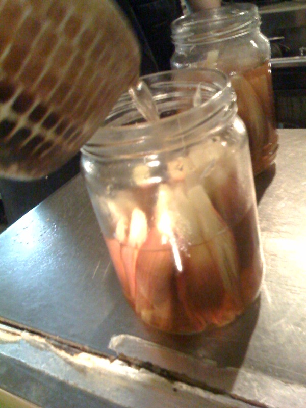 ということで、瓶に茗荷を入れたら、あっと言う間に甘酢漬け!(お)