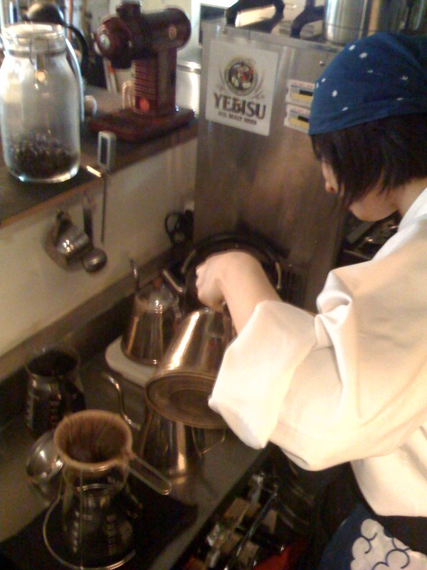 先日からキッチンスタッフのくろちゃんもコーヒー修行中…全然習わないで見よう見まねで淹れた一回目に比べたら、あっという間に上手くなります。やっぱりキッチンスタッフは道具の扱いが上手いですね!(お)