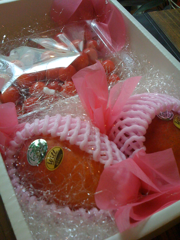 遅ればせながらーと、2Fのバナナフィッシュのふくちゃんに旬のさくら んぼとマンゴーを五周年のお祝いにいただきました。いやー、ホントにおいし そう!週明けさっそくごちになります!サンクス!(お)