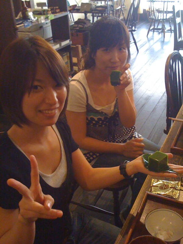 さてさて、ワタクシ先ほど病院に先週の痛風騒ぎの血液検査の結果を聞きに行 ってきたんですが、ま、ある意味予想通りというか(苦笑)。でも、肝臓、膵 臓、腎臓と、機能的にはまるで問題なしと、えぇ、ちょっとホッとしました( 笑)。と、その帰り道、ついついおやつでもと、たかねさんの水ようかんを買 いました。早番がんばってくれたかっさんとおすぎ、そろって抹茶、仲よくて なにより(笑)。(お)