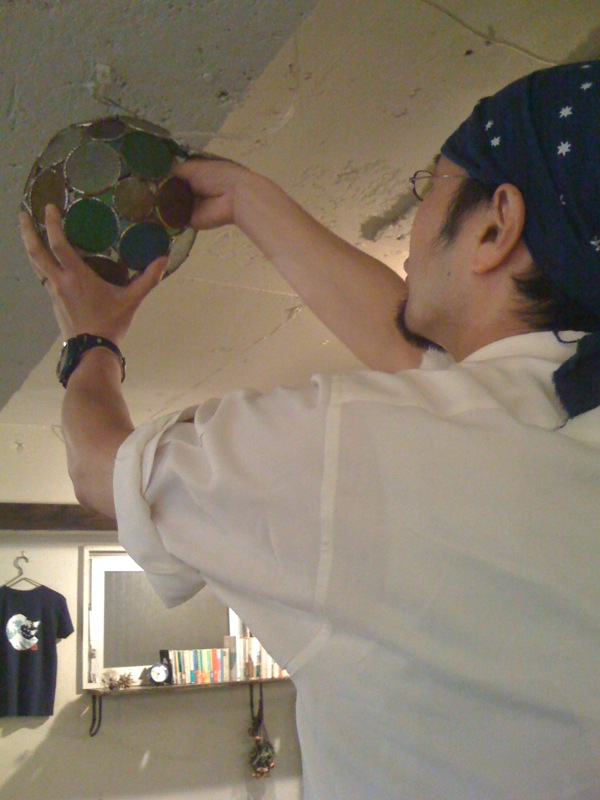 いやね、ホールの天井真ん中のまるい星のランプ、オープンから5年に なりますが、はじめて電球が切れました…いや、長持ちでしたね(すごい!) ということで、えいやと新しいのに交換しましたとさ。あ、それだけです、ハ イ(笑)。(お)