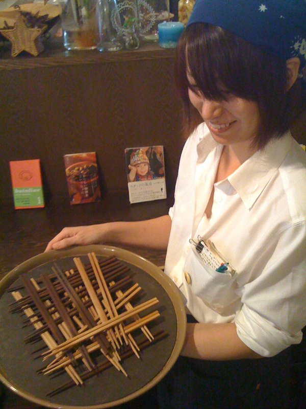平日遅番ひとりデビューの新人おすぎ、先輩ぬまっちの教えをよく守り、てきぱき仕事、いいかんじ…って、ディナータイムもぼちぼち、そろそろお箸をセットしましょと、あれ、おすぎ、それは!…箸の長さを予め揃えておいて、宅でてきぱき置けるようにと…その準備周到ぶりが、おすぎらしい!