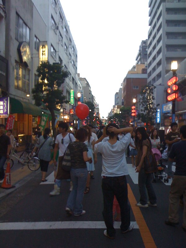 賑う歩行者天国、赤い風船、華やぐ夏祭りの宵の口。なんだかほんのり懐かしいよな気分にもなるね。(お)
