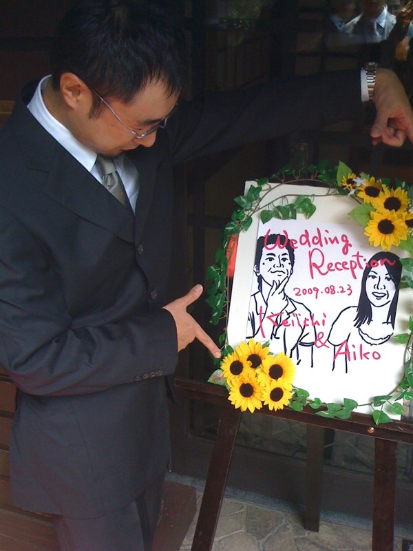お盆休みにがんばって作った披露宴のウェルカムボード、えぇ、こんなかんじ…って、会場が会場だけにちょっと浮いてる?(苦笑) 何卒とご勘弁の程を。(お)