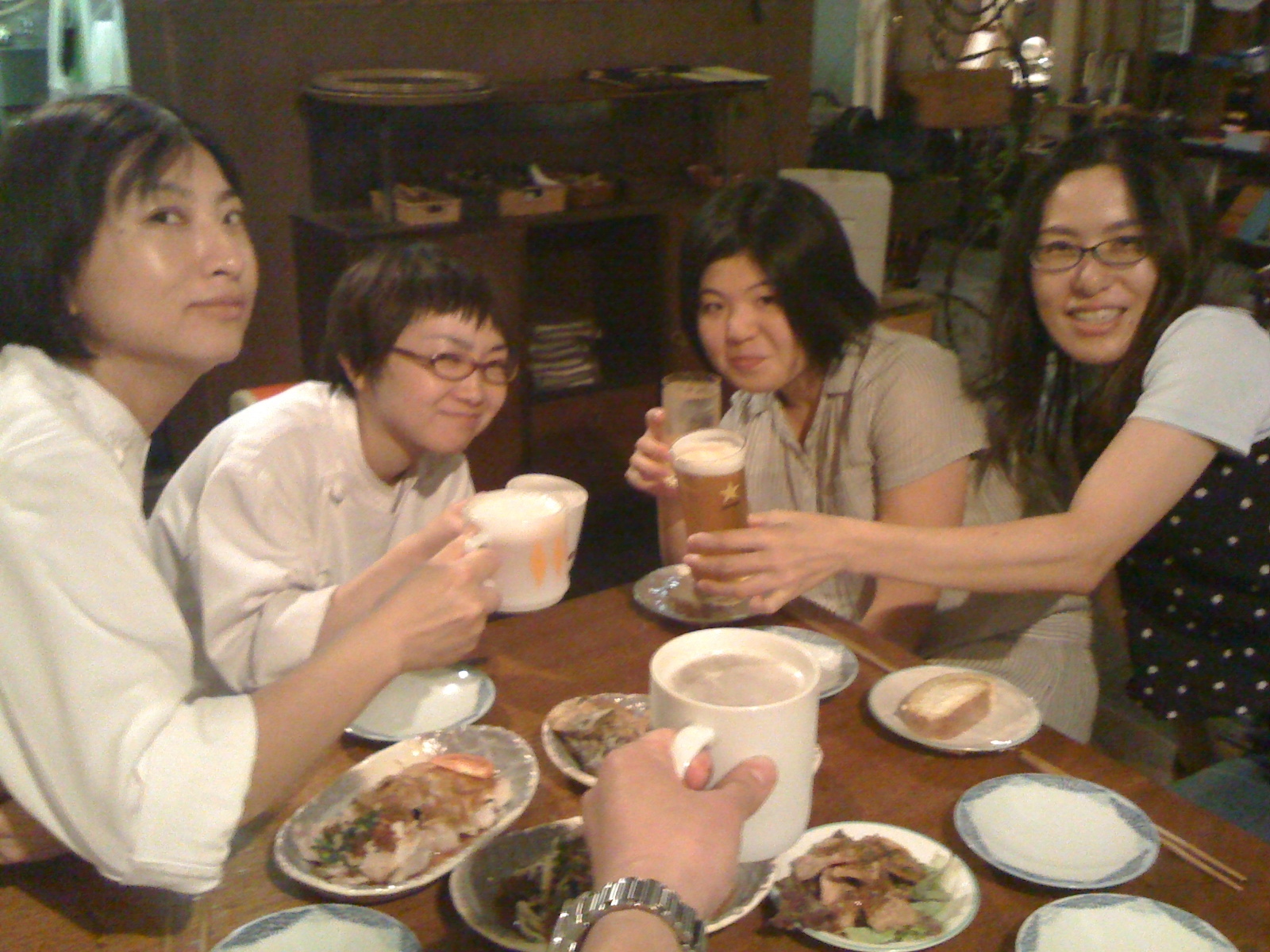 コテンパンに忙しかった日曜日、閉店後みんなで一杯のみながら反省会…とにもかくにもお疲れさま。次につなげてがんばりましょうね。たのみましたよ。(お)