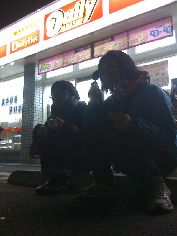連雀通り沿いのヤマザキデイリーストアでアイスをたべる我々…って、体が冷えてきた~…イワンこっちゃない!(苦笑)(お)