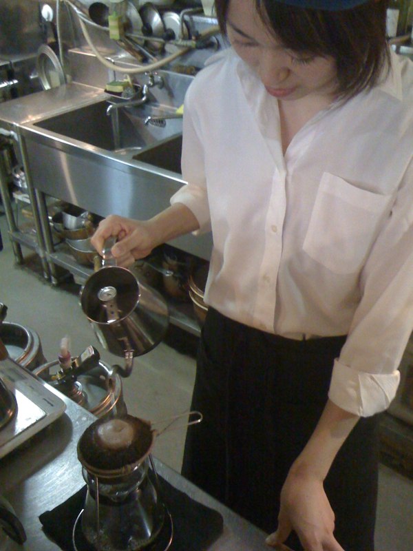 開店前の小さな時間、ちょっとコーヒーでものみたいねと、賄い様の豆で、ぬまっちに淹れてもらうことに…あ、ほんのちょっと豆が余ってしまいましたと、だったらついでに淹れちゃって!と、そのほんのちょっとで、ネルから溢れんばかりにむくむく膨れ上がってしまいました!(笑) いつも以上に慎重に、そろそろ淹れるぬまっちでありました(笑)。(お)