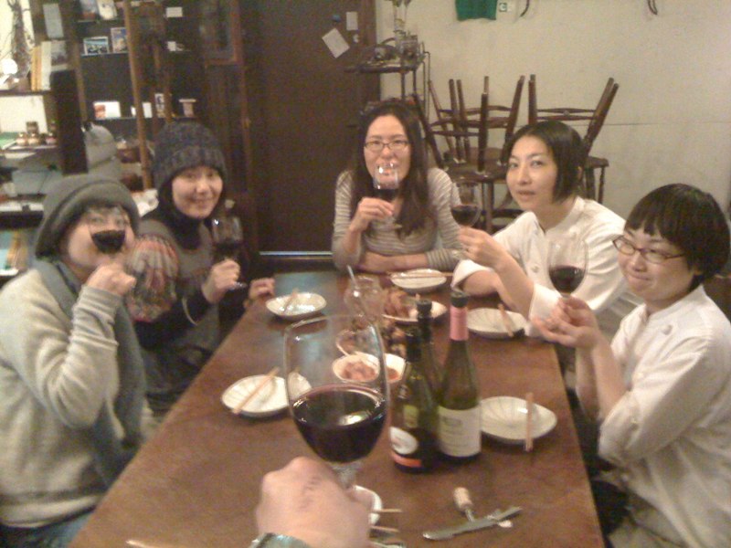 一本とちょっとだけ余ったボジョレー、やっぱりワタクシたちもいただきましょうよ!と、日曜深夜…本日は特別ゲストもお招きしてのボジョレーナイト! このあと、助っ人スタッフのまあこさんの乱入もあり、楽しい宴となりました。(お)