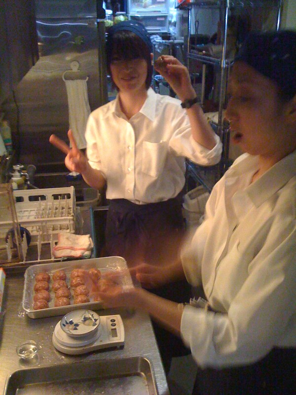 新人スタッフ、キッチンのお手伝いの登竜門と言えば、肉だんご丸め。これが簡単そうで、意外といろいろ気を使う作業なんですね。