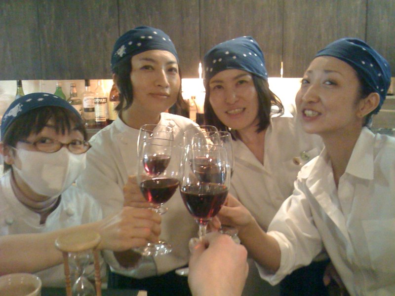 今年最後の土曜の夜、やっぱりなかなか忙しかったんですが、えぇ、スタッフ一同よくがんばりました…ということで、クリスマス限定入荷の赤ワイン、少し残っておりましたので、遅番スタッフみんなで乾杯!なのでありました!(お)