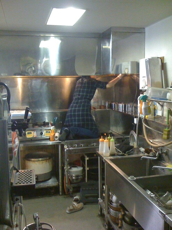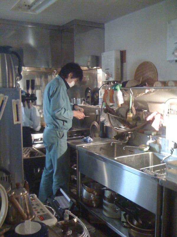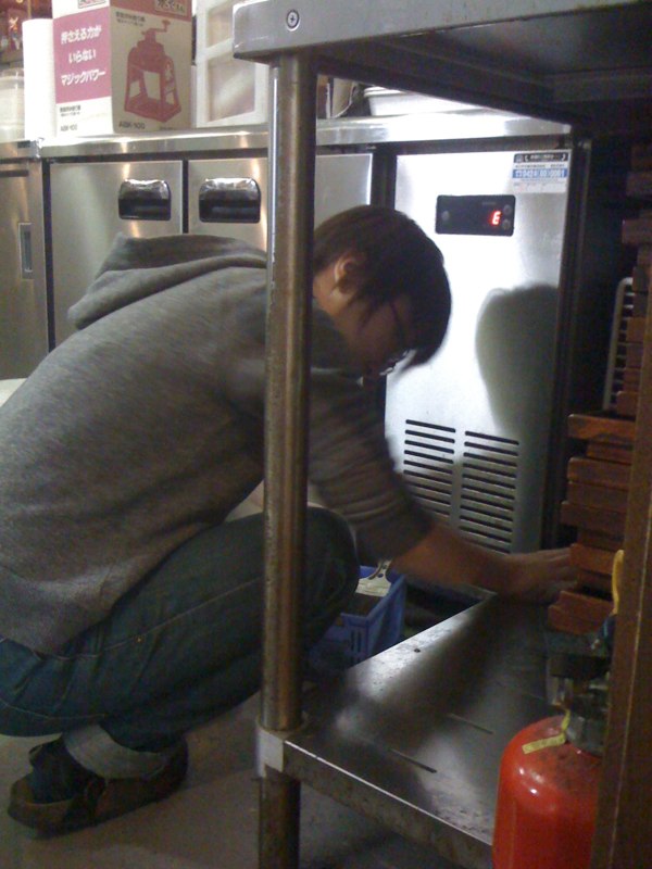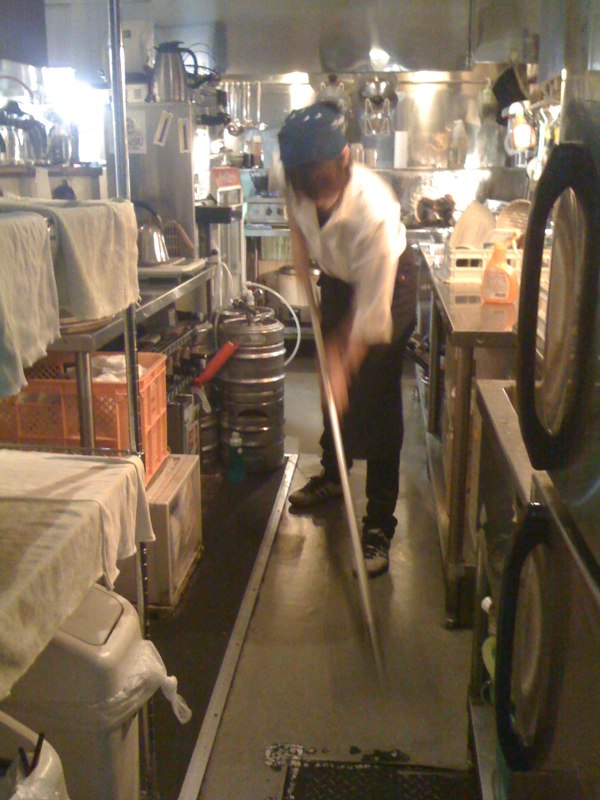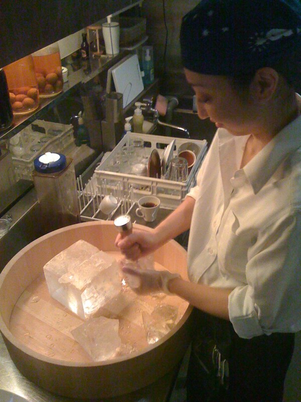 ぬまっちによると、遅番で最も好きな仕事(笑)、配達された氷のカタマリをアイスピックで程良い大きさに割る作業…ってこれが氷の目を読んで的確な角度と力で割って行く、至極職人的でストイックな仕事…ということで、きめちゃん、修行中です、ハイ(笑)。(お)