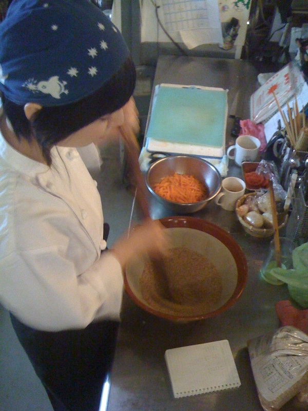 中華鍋でからりと香ばしく炒った胡麻を、あつあつをそのまま迷いなくすってしまう訳ですが、えぇ、ちなみにキッチンスタッフのくろちゃん、いわゆる「ゴマヲスル」からは最も遠いところにいるタイプであります(笑)。