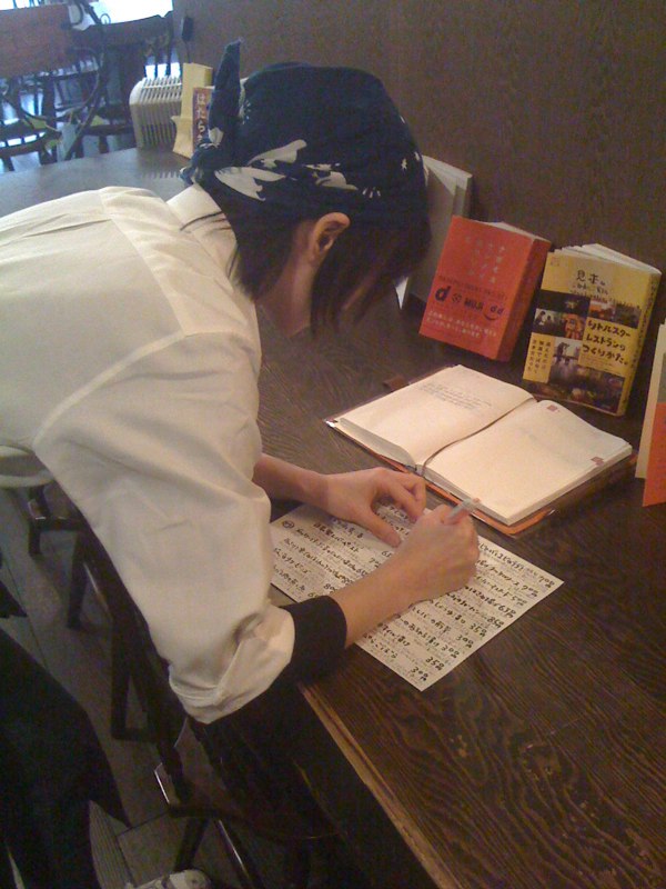 先日日曜日におなじみのお客さんにいただいたのがこちら!(笑)いやいや失礼しちゃうわねと…やっぱり言えないワタクシ、えぇ、実は本日もほんの~りフツカヨイでありましたから(苦笑)。いやでも、この小さなほん、内容はよくできてます、サンクス!(お)