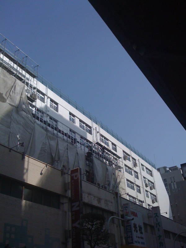 完璧なまでの青空…お向かいの公団の外壁工事、そう言えばいつまでかなと思ったりしますが(いや、大して迷惑をしてる訳でもないんですが)、えぇ、改装して、また真っ白な壁と青空とのコントラストが、きっときれいだろうなと。(お)
