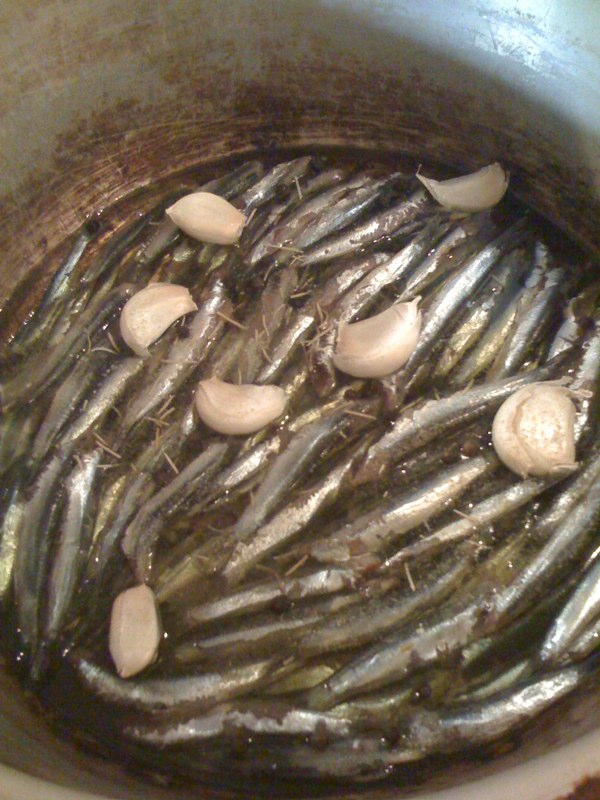 黒こしょうとハーブ、にんにくといっしょに、オリーブオイルに漬け込んだら、弱火でことこと煮込みます…って、今回はこのオイルをそのまま使って、新じゃがのコンフィとともにお出ししておりますよ!ぜひ!(お)