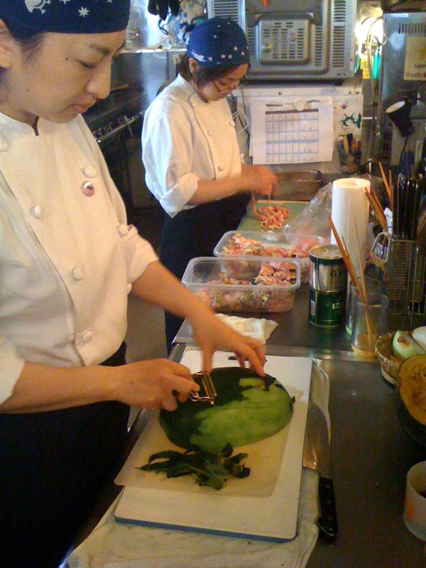 みどり坊主のその頭、そりそりとそりそりと…剃りあげるかのごとく、冬瓜の皮をむいております、店長ミヤザキでありました。(お)