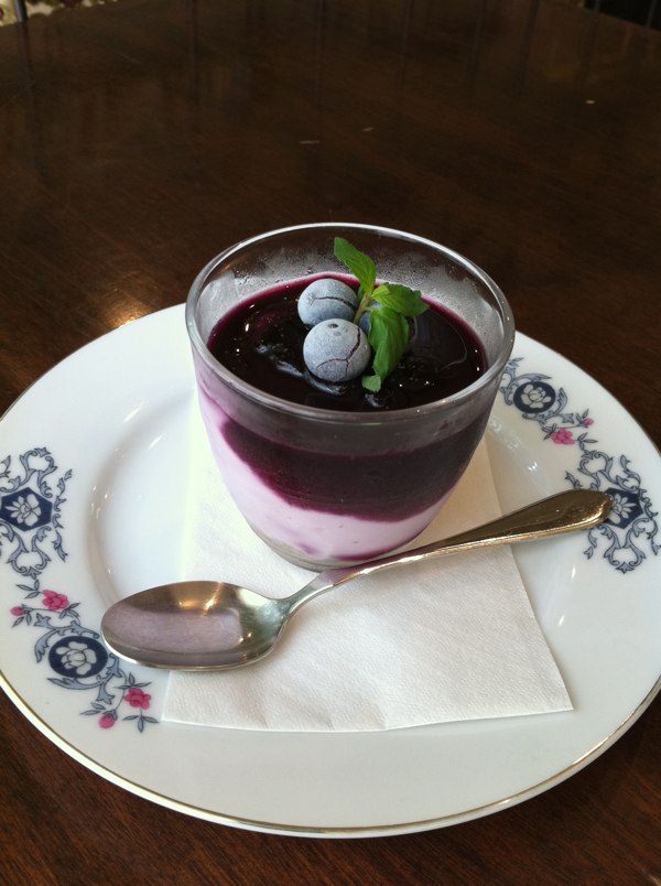 店長ミヤザキプロデュース!こいけ菓子店謹製の三鷹産ブルーベリーをふんだんに使ったブルーベリーのレアチーズケーキ!…あぁ、もう絵だけで説明はなんもいらんやね!たべるべし!(お)