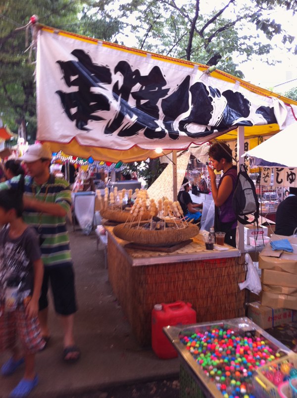 去年と同じ屋台ですね…って、みたらしのたれをぬってもらって、みんなの分もと3本いただきました。ちなみに購入直後、たたたぁーっと走って来た小学生、ワタクシに向かって「だんごください!」…って、ごめん、だんご屋さんじゃないんだ、おじさんは(苦笑)。あぁ、オチまでついて、今年もみたらしゲット、ありがとうございました(笑)。(お)