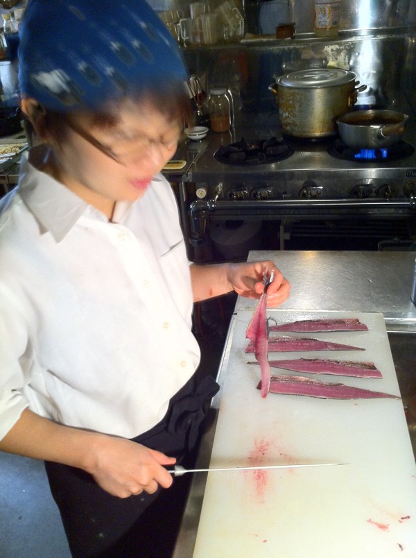 新・必殺包丁人、刃に情けはございません…と、今日も非情なまでにばっさばっさと旬のさんまを三枚におろしてくれました。今夜もとっておきのさんまメニューがおいしい!(お)