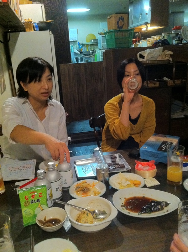 みんなのおみやげ類でいっぱいの宴会、またヨロコばしからずや…って、この後朝まで続いてしまったのだが(苦笑)。(お)