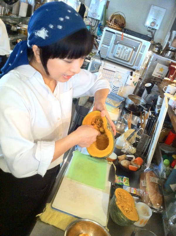 ハロウィンと言えばかぼちゃ!ということで、今日はかぼちゃのメニューがちょこちょこありますよーと、仕込みに余念のない店長ミヤザキでございます。あ、季節のデザート「かぼちゃのタルト」も、本日在庫限り、売り切れ御免でお願いします!(お)