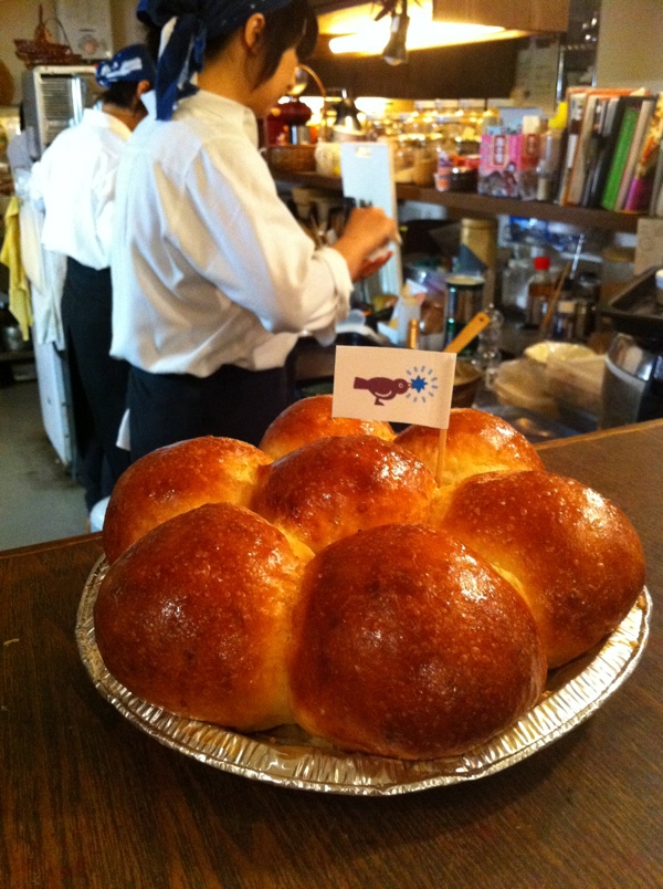 クリスマスディナーのパンメニューも好評なチカコさん、本日最後の納品といっしょに、すてきなクリスマスケーキならぬクリスマスパンをプレゼントしていただきました!うれしいね!おいしいね!イェイ!(笑)ありがとうございます!(お)
