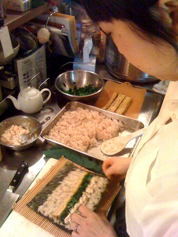 ということで、毎年恒例恵方巻きには皆勤賞のおなじみさんが、今年も恵方を向いて、立ち上がって、丸ごと一本、ものも言わず、休むことなく、もくもくと実に正しく完食御礼!…背中の英文もまたうってつけでした!ありがとうございました。(お)