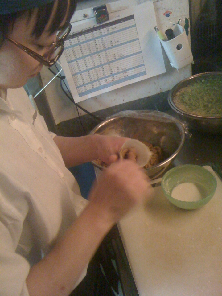 茹で上がったばかりのほかほか春キャベツ、この鮮やかな黄緑青緑が食欲をそそります〜蒸し鶏と粒マスタードドレッシングで和えて頂きます。新たけのこ、新玉ねぎ、新じゃがに新人参とメニューに春ものが出揃っておりますよ。(ぬ)