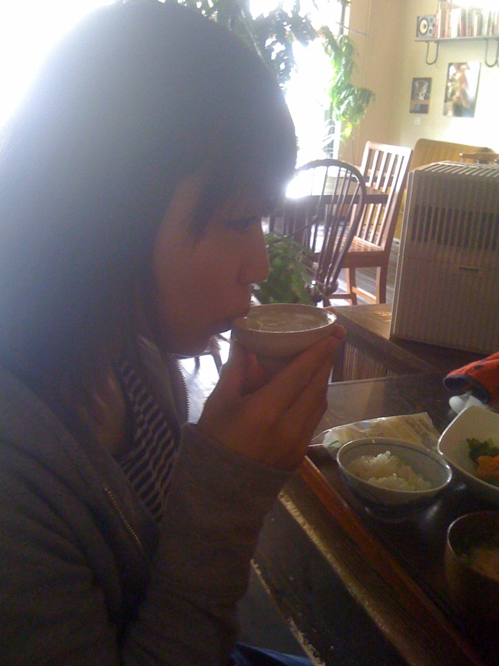 賄い時間に酒を一杯ひっかけているイトウちゃん。マイ器で飲むと美味しいね〜と、酒の口当たりが変わるようです。先週初めて作家モノの器を購入したイトウちゃん。今回は豊盃を堪能した様子。(ぬ)