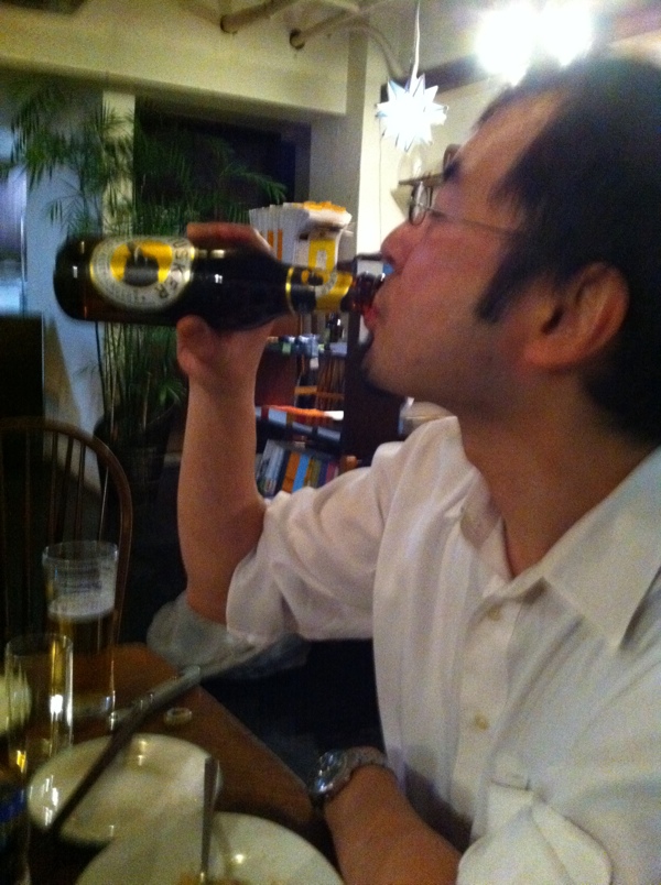 深夜みんなでちょっとした宴会をしてくれて、きめちゃんがプレゼントしてくれたケニアのビール!象のロゴがとてもすてき。ありがとう、ちょっと救われ、さて、いい休日を過ごさなくちゃ!(お)