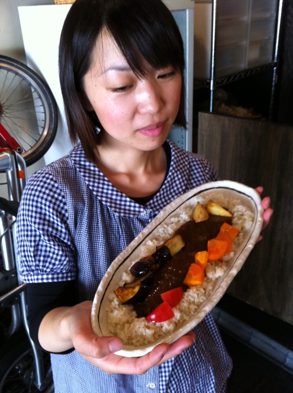 本日の賄いにカレーをチョイスした伊藤ちゃん.....いつもの細長いお皿に.....一回やってみたかったんです!とごはんをまわりに細〜く盛って、その上に揚げ野菜等々トッピング.....真ん中にカレーのルーを流し込んだら出来上がり!題して伊藤特盛「土手カレー!」.....って、そのネーミングどうよ?(苦笑)いや、やってはみたものの、今ひとつらしくて......もう二度とやらないそうです、えぇ、なのでこの表情なのでありました、ハイ(笑)(お)