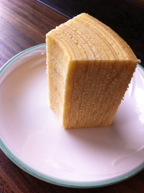 自転車友達からお祝いの品!店長ミヤザキの大好物、バウムクーヘン。毎年忘れずにお祝いをありがとう!(麻)