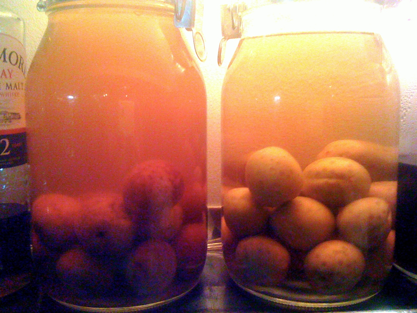 2010年度に漬け込んだ梅酒が本日よりデビューです。(右側の瓶)フレッシュな色味をしております♡左の瓶は2009年モノの熟成梅酒。ロックでおだしいたします。飲み比べても面白いかもしれませんね♪(き)